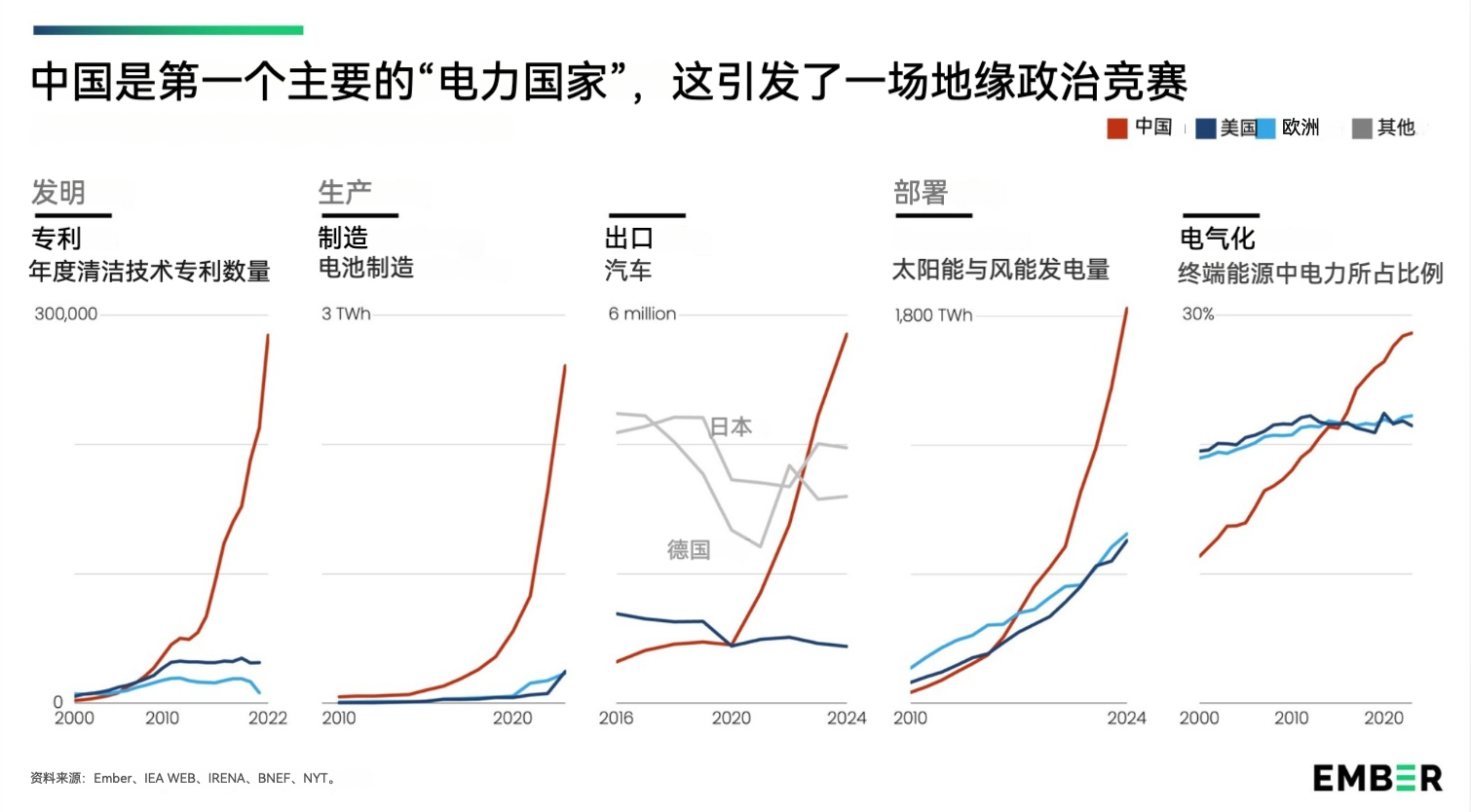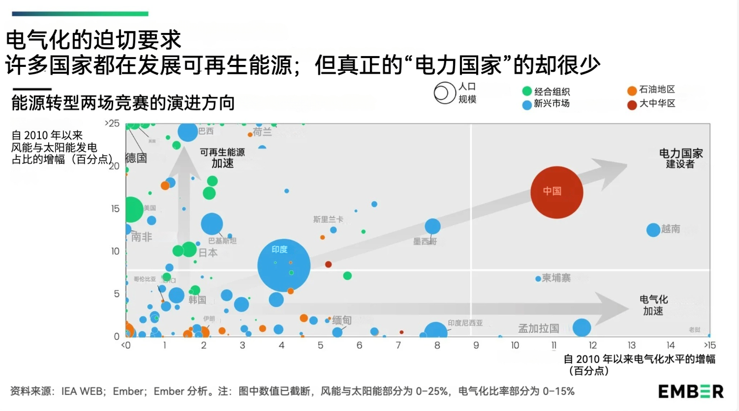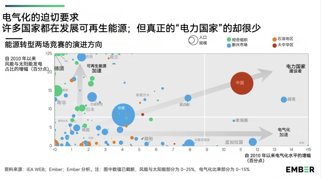 中国常被拎出来,当作“电力国家”的典型形态。它一直在扩大终端能源消费中以电力形式供给的比重。与此同时,在过去五年里,可再生能源已成为(中国)增长最快的发电来源。不仅如此,中国制造商还主导着电动汽车产业,从而使内燃机被迅速取代的前景变得清晰可见。超高速(电气化)铁路,则在中国境内跨区域出行上与航空运输形成竞争。再者,中国当然也是一种国家发挥关键作用的混合经济体。因此,中国几乎完全符合“电力国家”的各项特征。