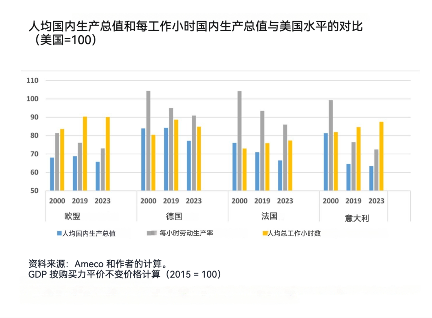 祖克曼与皮凯蒂坚持认为,这种沮丧之情已如此深重,以至于欧洲再也无法看清现实。根据他们的数据,欧洲的每小时劳动生产率实际上高于美国。