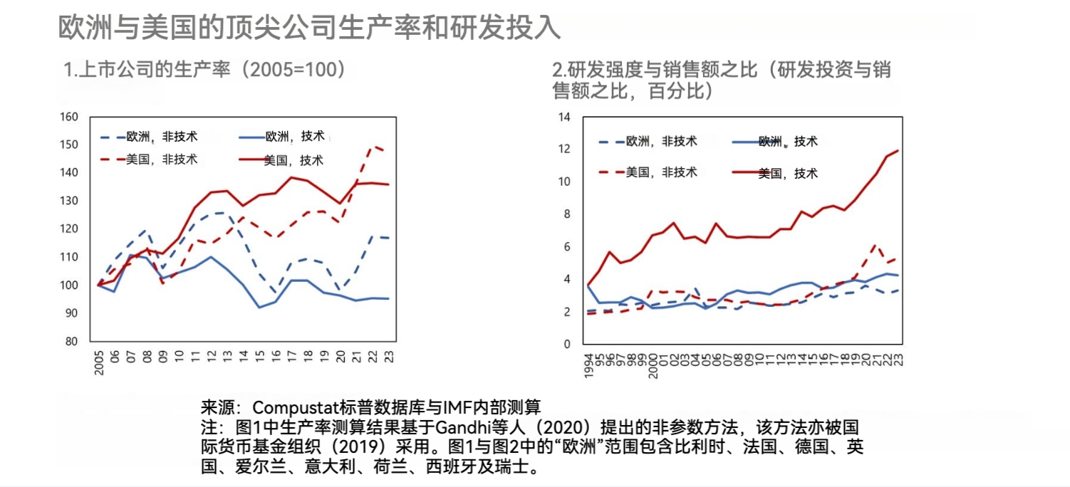 “欧洲衰退论”甚嚣尘上,其中究竟有几分属实?数据显示,欧美之间确实存在生产率差距,但主要由美国的少数明星科技企业拉开。