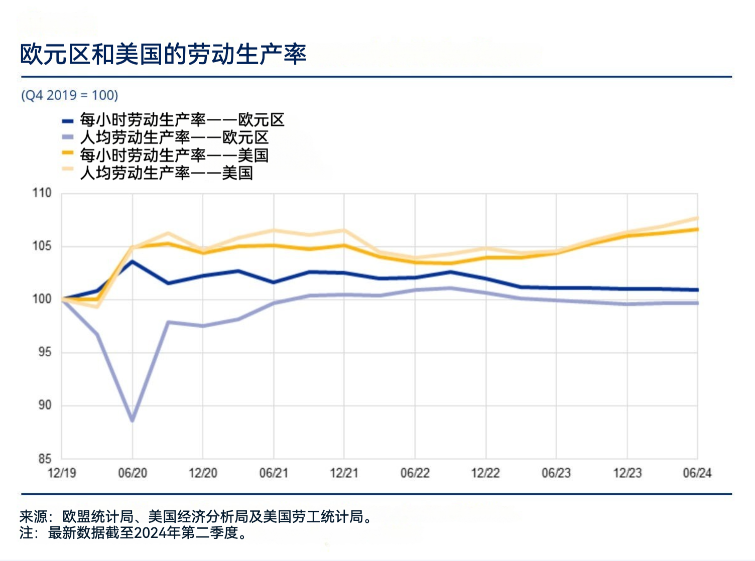 在2019-2024年间,美欧生产率再度急剧分化,首先是在疫情期间,随后在2022年后又叠加了乌克兰战争的冲击。毫无疑问,这进一步加剧了欧盟目前的沮丧情绪。过去的几年并不好过。
