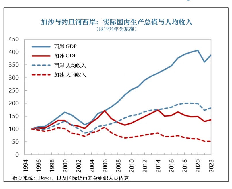 至此,加沙地带不仅成为了物理意义上的孤岛,还在经济发展上与约旦河西岸地区开始产生严重的分化。
