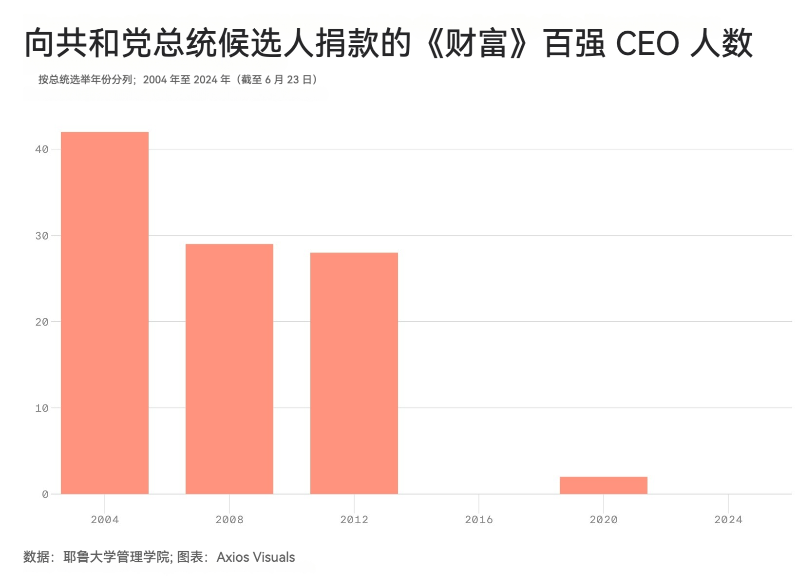 到2024年6月下旬为止,福布斯百强企业的首席执行官里向特朗普捐款的人数为零,正如我在之前的“从特朗普被定罪看美国的权钱交易”一文所分析的,即便经历了“那场”辩论和暗杀事件,特朗普的超级富豪捐赠者仍由一些独具个性的亿万富翁组成。