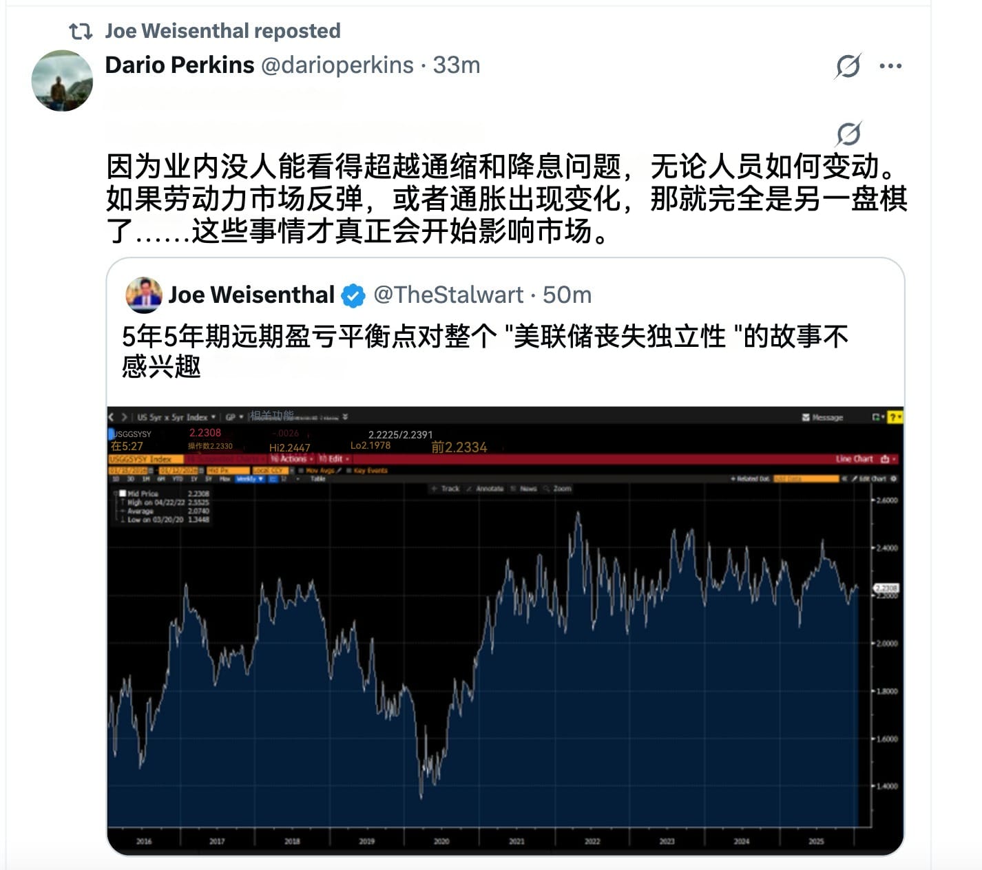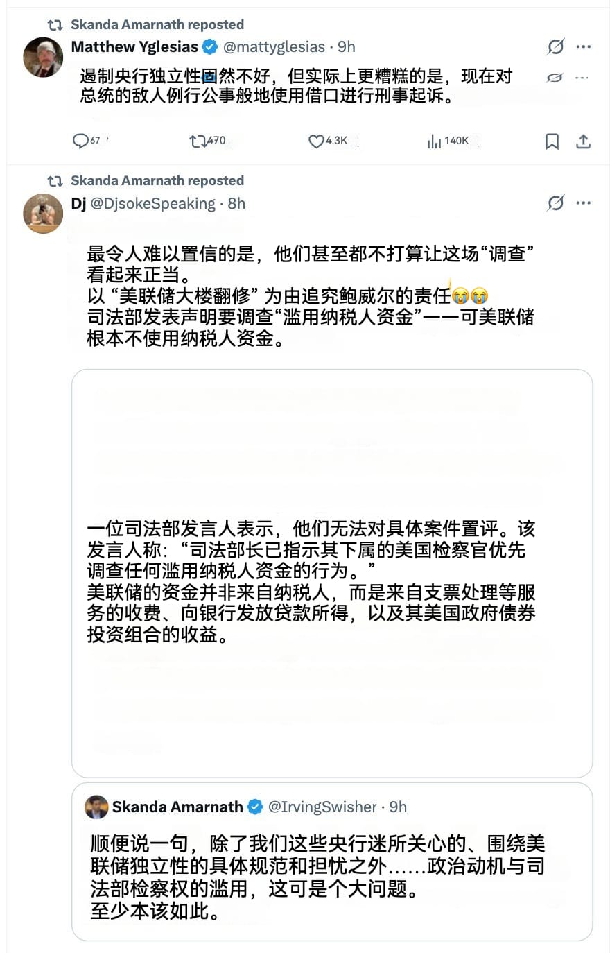 如果市场真正关心的仅有宏观经济学的技术细节,以至于会无视一场试图通过法律手段胁迫美联储主席的公开行动,那么这反而凸显了美国精英内部政治共识的溃散。